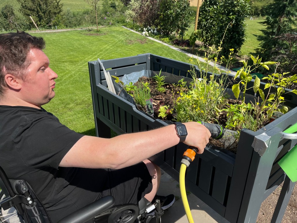 Die Beete gieße ich 1x am Tag meistens morgens zusammen mit Nico (meinem Betreuer). Der rest wird automatisch bewässert.