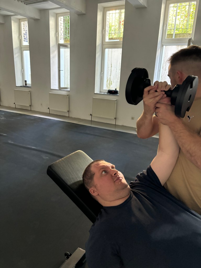 Dorian hatten wir bei der Intensivtherapie kennengelernt. Er hatte mich beim Gehroboter betreut und unserer Meinung nach einen hervorragenden Job gemacht. So hatte er als erstes die Einstellungen beim Einspannen perfekt im Griff und es war sau abwechslungsreich im Gehroboter. Zudem haben wir kognitiv gute Übungen auf der pumperbank für mein linkes Bein gemacht.