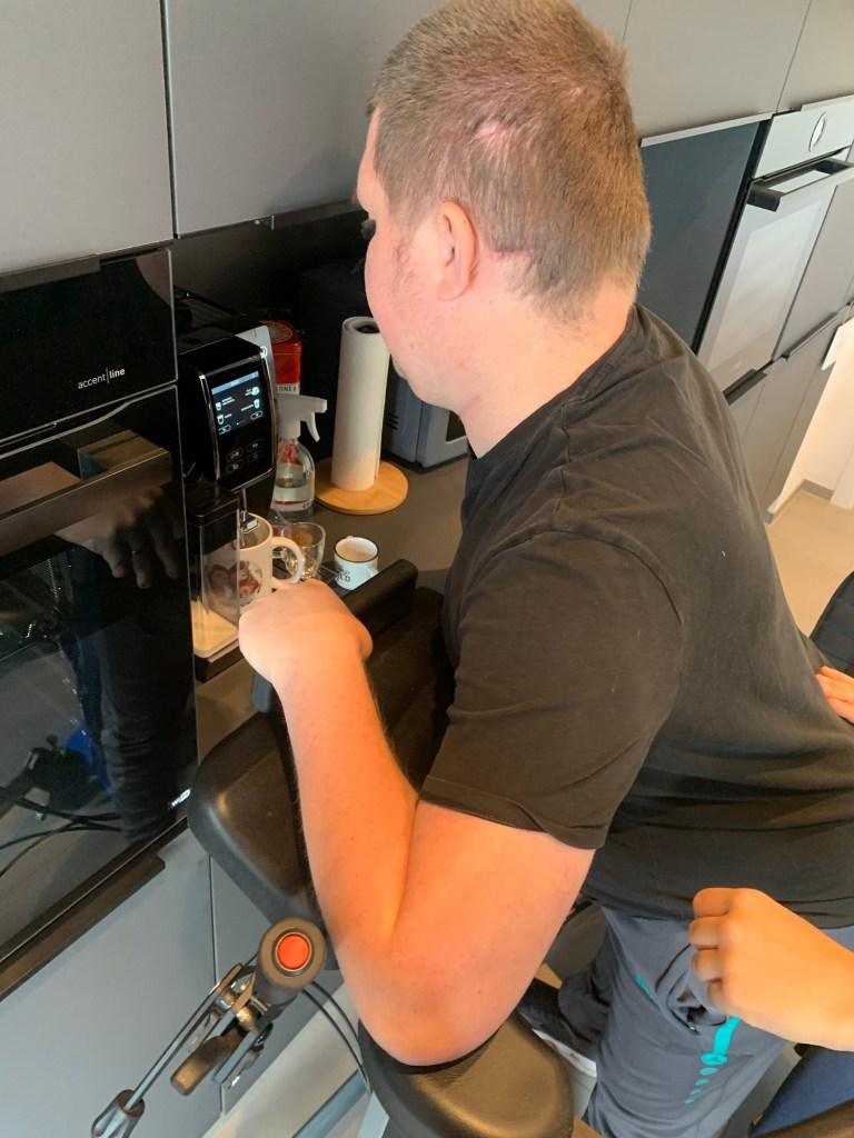 Heute bin ich vom pflegebett im wohnnzimmer in die Küche gelaufen zur Kaffeemaschine um meinen ersten Kaff für jemand anderen zu machen und zwar mit und für Melanie