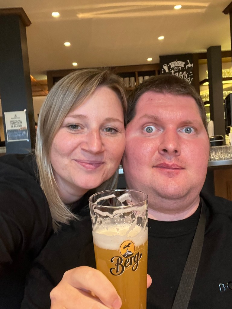 Gestartet haben wir nach einer umfahrenen Vollsperrung auf der A81 bei der Brauerei Berg Berg Bier aus Ehingen/Berg! Willkommen in der Berg Brauerei. mit einem Probierbrettle und einem dreikornweizen 🍺🍻,maultaschensuppe, Haxen und Cordon bleu